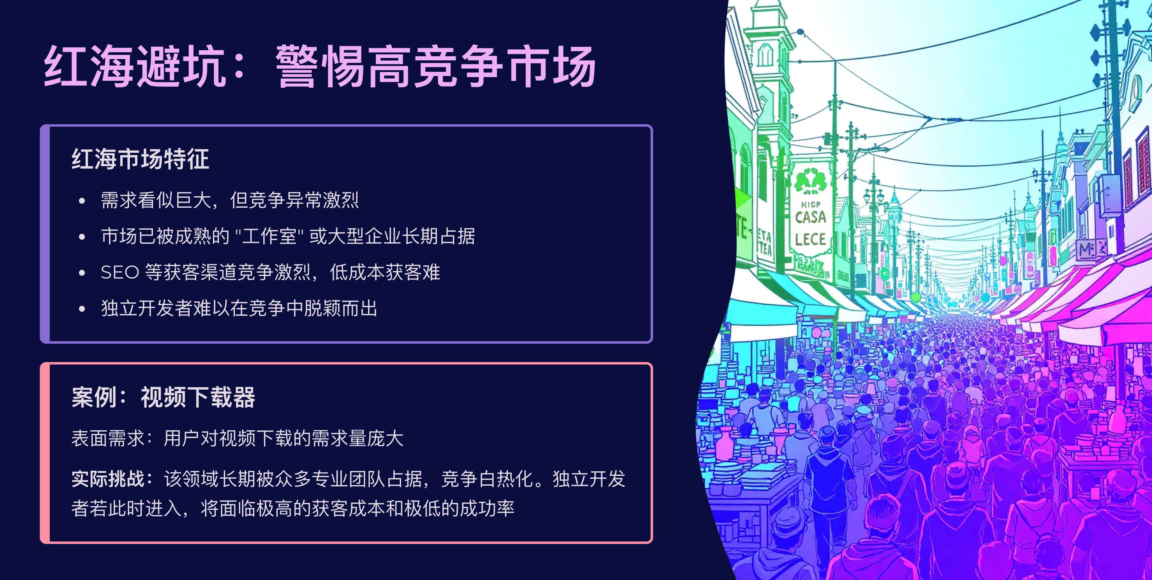 例如 Video Download 流量虽大但竞争惨烈,是典型红海,请出门左转要绕开